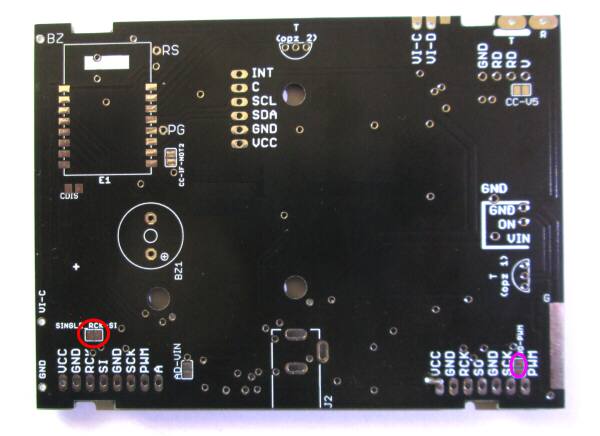 In versione RAW necessita di alimentazione 3.3V e si comanda con 2 segnali base SI SCK; oppure se si hanno più GPIO a disposizione si possono usare anche RCK PWM (4 GPIO in tutto) ed avere scrolling migliore e luminosità variabile. Se si vogliono usare solo 2 segnali si possono cortocircuitare i solder jumper Rosso e Violetto in figura sotto.