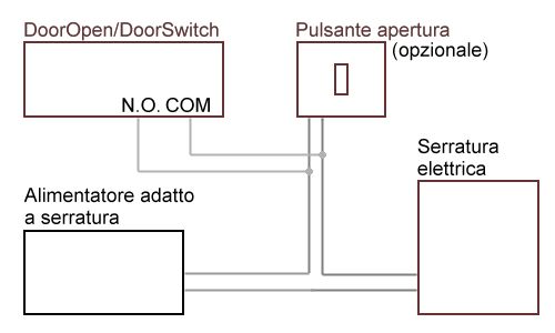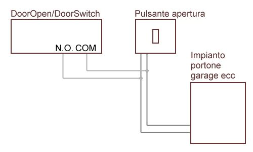 DoorOpen può funzionare sia con citofoni e sistemi di apertura (garage, cancelli), in questo caso si useranno i morsetti del citofono o della centralina dedicati all'apertura; o ci si può attaccare direttamente in parallelo a un pulsante di apertura esistente.