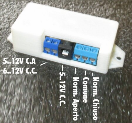 - versione multitensione, da 5 a 12 V C.C/D.C. oppure da 5 a 12 V C.A/A.C. Quindi va bene per 5V 6V 7V 8V 9V 10V 11V 12V, Praticamente funziona con qualsiasi citofono o serratura o cancello o garage, potendo prendere l'alimentazione dallo stesso alimentatore della serratura o del sistema di controllo e non necessitando quindi di un alimentatore separato.